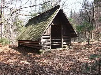 - ↑ Według napisu na tablicy nad wejściem do budynku obiekt był schroniskiem. W literaturze spotyka się informacje, że był to tylko schronem turystycznym. (Tomasz Biesik: Schroniska górskie dawniej i dziś. Beskid Makowski, Beskid Wyspowy, Gorce, Pieniny i Beskid Sądecki. Bielsko-Biała: Wyd. "Logos" Agnieszka Korzec-Biesik, 2013, s. 208-2011. ISBN 978-83-925599-5-5.)