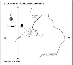 - 1 2 3 4 Adam Polonius, Schronisko Drugie, [w:] Jaskinie Polski [online], Państwowy Instytut Geologiczny – Państwowy Instytut Badawczy [dostęp 2019-08-05].