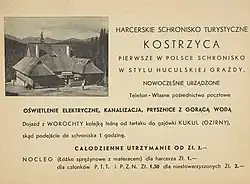 - 1 2 3 4 Nowe schronisko harcerskie na Kostrzycy, „Ilustrowany Kurier Codzienny” (331), Kraków, 29 listopada 1935, s. 20 (pol.).