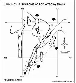 - 1 2 3 4 Adam Polonius, Schronisko pod Wysoką Skałą, [w:] Jaskinie Polski [online], Państwowy Instytut Geologiczny – Państwowy Instytut Badawczy [dostęp 2019-07-11].