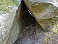 Schronisko znajduje się w skałach Piramidy położonych tuż za polanką w Lisim Wąwozie. Składa się z dwóch krzyżujących się z sobą szczelin. Pierwsza ma długość 5,5 m i jest prawie prosta, druga po około 2,5 m skręca pod prostym kątem i krzyżuje się z pierwszą szczeliną. Ponieważ połączenie między szczelinami jest na pewnym odcinku niedostępne, w istocie więc są to dwa schroniska połączone ciasną szczeliną. Schronisko północne ma wysokość do 3 m, szerokość do 0,8 m.