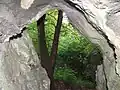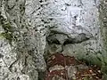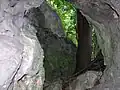 W ścianie dziedzińca północnego na wysokości 3 m jest jeszcze jedno niewielkie okienko, od którego ciągnie się w głąb skały rura krasowa przebijająca skałę na wylot i wyprowadzająca otworem obok otworu drugiego[1].