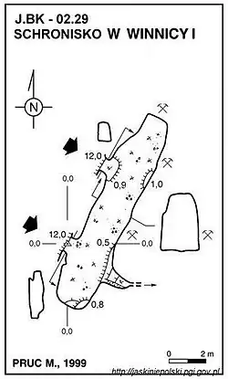 - 1 2 3 4 5 Marcin Pruc, Mariusz Szelerewicz, Schronisko w Winnicy Pierwsze, [w:] Jaskinie Polski [online], Państwowy Instytut Geologiczny – Państwowy Instytut Badawczy [dostęp 2019-10-14].