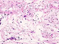 Guz zbudowany jest z jednorodnych komórek o morfologii komórek Schwanna. Jądra komórkowe są wydłużone, układają się w wiry, pasma lub palisady. Charakterystyczne dla guza jest tworzenie tzw. ciałek Verocaya. W części przypadków wraz ze wzrostem gęstości komórkowej jądra przyjmują okrągły lub wieloboczny kształt. Typ histologiczny w którym komórki są zbite i ustawione palisadowato określa się jako Antoni A; typ w którym komórki są ułożone nieregularnie i luźno to typ Antoni B.