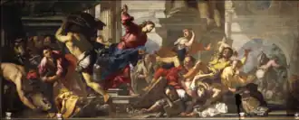Na suficie umieszczone zostało wielkowymiarowe płótno Sąd Ostateczny Antonia Zanchiego z 1674 roku. Na ścianie prawej wisi obraz Jezus wyrzucający przekupniów ze świątyni tego samego artysty z 1667 roku, a na pozostałych ścianach: Jezus uzdrawiający opętanego Giovanniego Segali, Wskrzeszenie Łazarza Ermanna Zeresta, Wieczerza w domu faryzeusza Francesca Fontebassa, Dawid i Goliat Ermanna Stroifiego oraz Dwie Sybille Palmy Młodszego[7].