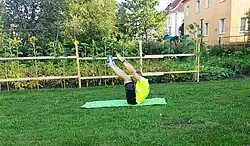 - ↑ Trening na mięśnie brzucha z piłką gimnastyczną | Fitness i aerobik [online], aerobik.fitness [dostęp 2018-07-13] [zarchiwizowane z adresu 2019-03-15] (pol.).