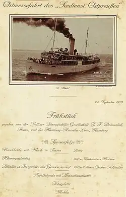 Po zakończeniu I wojny światowej Polska uzyskała dostęp do Morza Bałtyckiego, jednocześnie odcinając bezpośrednie połączenia komunikacyjne pomiędzy Prusami Wschodnimi a resztą Weimarskich Niemiec. Wychodząc tym potrzebom naprzeciw niemieckie Ministerstwo Transportu (Reichsverkehrsministerium) uruchomiło Seedienst Ostpreußen która miała zapewnić połączenie promowe z niemiecką enklawą Prus Wschodnich, co miało uniezależnić od tranzytu przez terytorium Polski.