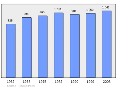Według danych na rok 1990 gminę zamieszkiwały 984 osoby, a gęstość zaludnienia wynosiła 53 osób/km² (wśród 3020 gmin regionu Midi-Pireneje Seissan plasuje się na 345. miejscu pod względem liczby ludności, natomiast pod względem powierzchni na miejscu 612.).