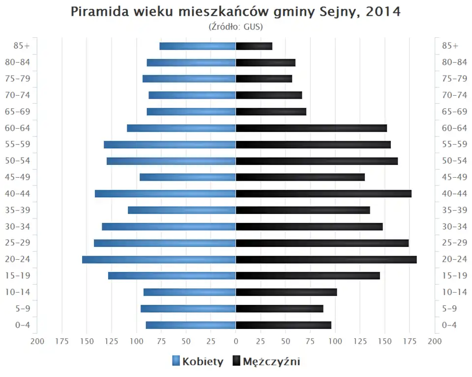 - Piramida wieku mieszkańców gminy Sejny w 2014 roku[1].