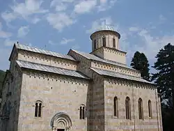 Do najwspanialszych osiągnięć szkoły kosowsko-metohijskiej należy ukończona około 1321 w Gračanicy pod Prisztiną na Kosowym Polu zadužbina króla Milutina. Świątynia składa się jakby z dwóch cerkwi mniejszej i większej wchłaniającej mniejszą. Nad całością wznosi się kopuła główna i cztery boczne. Podwójne i potrójne okna, wystrój zewnętrzny – kolorystyka ścian, liczne ozdoby ceramiczne nawiązują do stylu architektury Paleologów. W 1380 do narteksu świątyni został dobudowany egzonarteks.