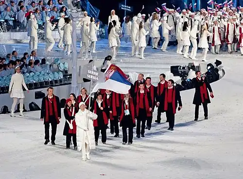 Był to pierwszy start Serbii na zimowych igrzyskach olimpijskich i trzeci, po letnich igrzyskach w Sztokholmie i Pekinie, start olimpijski tego kraju. Do igrzysk w Turynie sportowcy z Serbii startowali w barwach Jugosławii oraz Serbii i Czarnogóry.