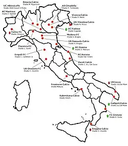Geograficzne rozmieszczenie drużyn Serie B w latach 2009-2010