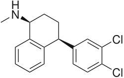 Sertralina (łac. sertralinum) – organiczny związek chemiczny, lek przeciwdepresyjny z grupy SSRI, stosowany w leczeniu zaburzeń depresyjnych, zaburzeń obsesyjno-kompulsyjnych, oraz zespołu lęku napadowego, zespołu lęku pourazowego i zespołu lęku społecznego[3].