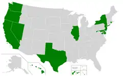 Posiadanie i sprzedaż płetw rekina jest zabronione w niektórych stanach USA (patrz: mapa powyżej).