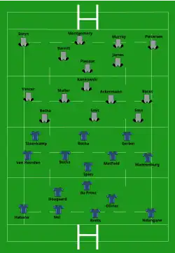 ![]() Formacja autowa drużyny Sharks w meczu ligi Super Rugby przeciwko Rebels (2011) | |||
