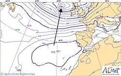 Pod nieobecność innych sił, nadaje cząstce przyspieszenie w tym kierunku powodując zmianę wartości bądź kierunku prędkości mas powietrza lub wody.