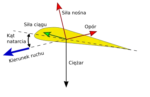 - – kąt natarcia, dla którego siła nośna jest równa zero.