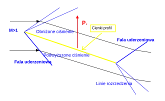 Powstawanie siły nośnej przy prędkości naddźwiękowej wyjaśnia się (i w prostszych przypadkach oblicza) stosunkowo prosto na podstawie własności gazów doskonałych oraz fal uderzeniowych i rozrzedzeniowych. Współczynnik siły nośnej Cz jest tu też w przybliżeniu liniowo zależny od kąta natarcia, lecz jego pochodna względem tego kąta jest zdecydowanie mniejsza niż w przepływie z małymi prędkościami i szybko maleje wraz ze wzrostem prędkości.