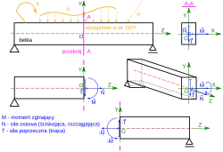 - moment skręcający – „kręcący” wokół osi pręta w płaszczyźnie (oznaczany też );