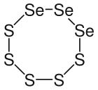 2, a stanowi mieszaninę różnych związków, której przybliżony skład można opisać takim wzorem. W stanie stałym siarka i selen tworzą cykliczne, zazwyczaj ośmioczłonowe cząsteczki o wzorze ogólnym Se