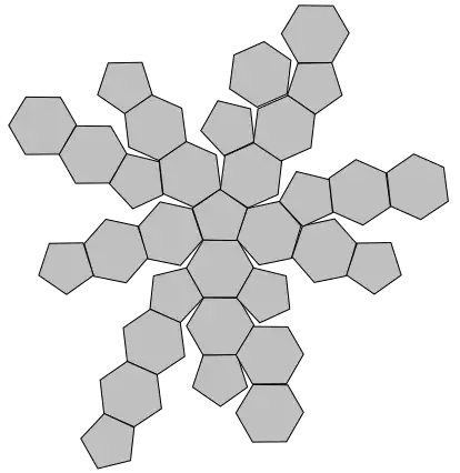 Przykładowa siatka bardziej skomplikowanej figury (dwudziestościanu ściętego):