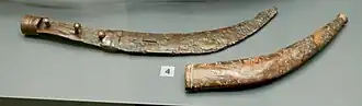 - ↑ Wśród innych podobnych z obszaru śródziemnomorskiego wyróżniana przez Rzymian jako typowa broń iliryjska (John Wilkes: The Illyrians. Hoboken: Wiley-Blackwell, 1996, s. 238–239).