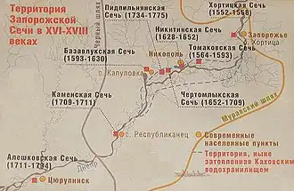 Lokalizacje Siczy Zaporoskiej