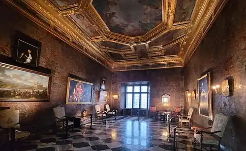 Na ścianach portrety królewskie: Michała Korybuta Wiśniowieckiego pędzla Daniela Schultza (królewskiego serwitora działającego w Gdańsku) - 1668–1669, Jana Kazimierza Wazy (po 1668 r.), Konstancji Austriaczki (szkoła flamandzka - 1. ćwierć XVII w.) oraz Ludwiki Marii Gonzaga (szkoła polska). Trzy fotele weneckie (ok. 1700 r.) pochodzą z warsztatu Andrei Brustolona.