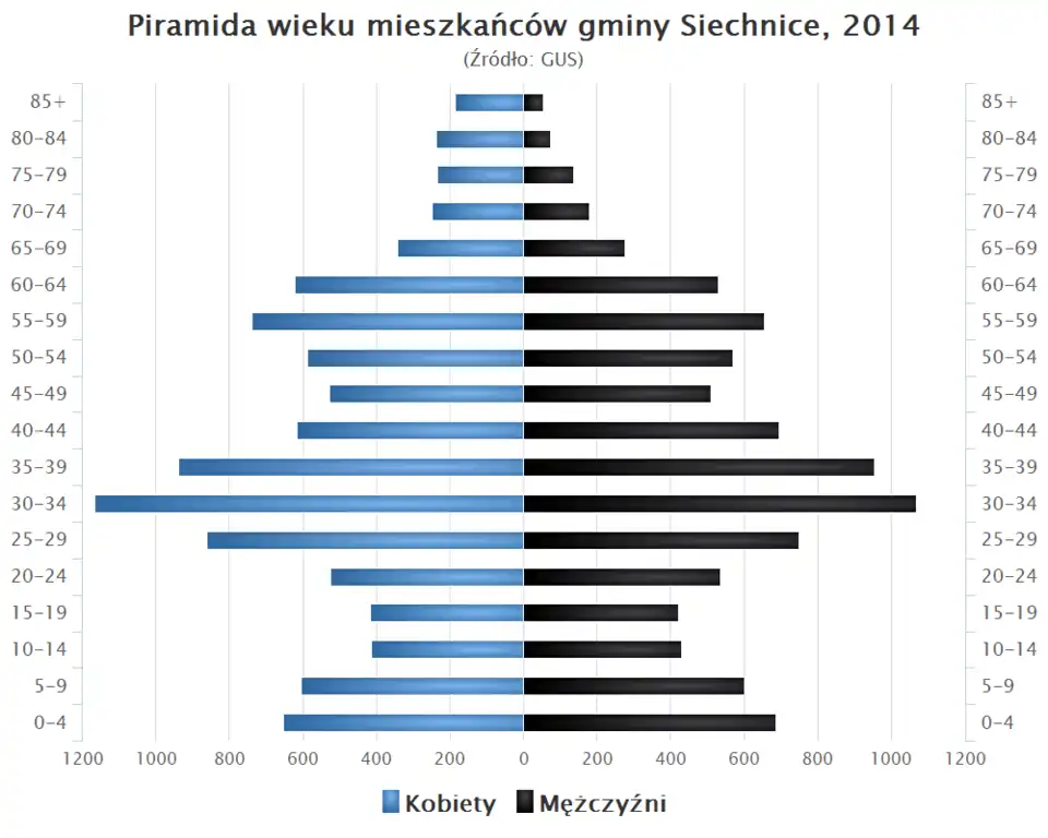 - Piramida wieku mieszkańców gminy Siechnice w 2014 roku[16]: