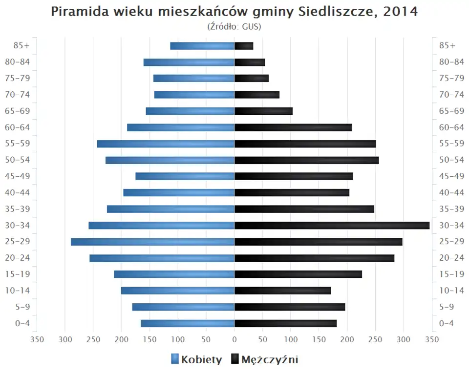- Piramida wieku mieszkańców gminy Siedliszcze w 2014 roku[1].