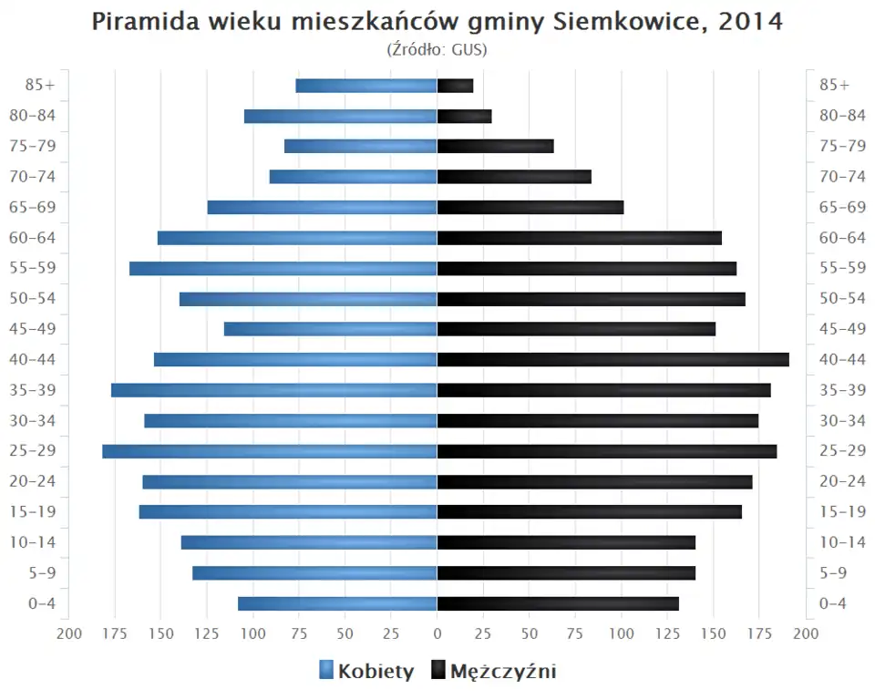 - Piramida wieku mieszkańców gminy Siemkowice w 2014 roku[1].