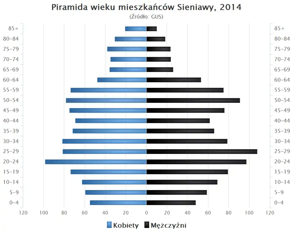 - Piramida wieku mieszkańców Sieniawy w 2014 roku[17].