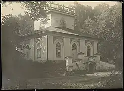 - prawdopodobnie również zaprojektowany przez Borettiego, stojący na skraju parku, nad stawem, dwukondygnacyjny, drewniany świron. Miał kształt wielokąta lub koła, był otoczony wielokolumnową galerią wspierającą wielopołaciowy dach. Jego usytuowanie może świadczyć o tym, że służył jako letnia łazienka kąpielowa