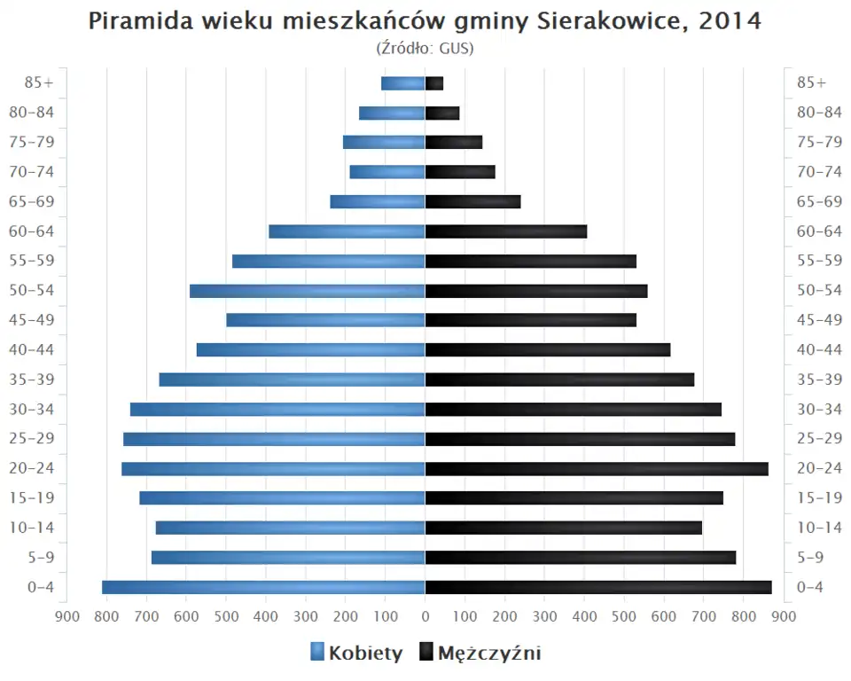 - Piramida wieku mieszkańców gminy Sierakowice w 2014 roku[1]: