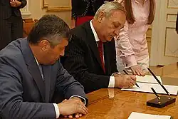 - ↑ Bagapsh inaugurated as president of Abkhazia. RIA Novosti, 12 lutego 2010. [dostęp 2010-02-13]. (ang.).