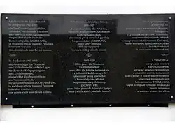 26 maja 2009 r. na frontowym murze Zakładu Karnego została odsłonięta 3-języczna (niemiecko-polska-rosyjska) tablica pamiątkowa upamiętniająca funkcjonowanie w tym miejscu zarówno obozu dla Polaków podczas okupacji niemieckiej w czasie II wojny światowej, jak i obozu dla Niemców, po zakończeniu okupacji.