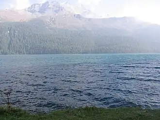 Na południe od jeziora znajdują się znane tereny sportów zimowych – masyw Corvatsch.