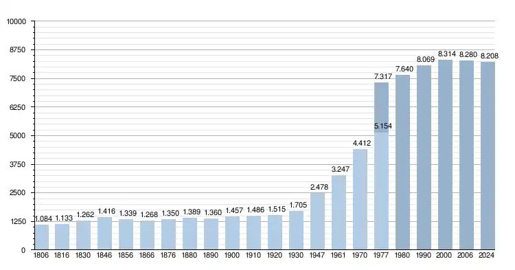 - Źródła: NIS, od 1806 do 1981= według spisu; od 1990 liczba ludności w dniu 1 stycznia
