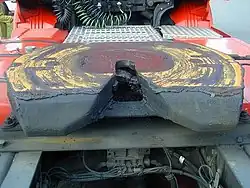 Siodło pełni równocześnie funkcje sprzęgu i łożyska ślizgowego. Naciski wywierane na siodło zawierają się w przedziale od 5 do 36 ton. Jednakże zasadniczy zakres nacisków to 15–29 ton. Zastosowanie tego elementu pozwala na znaczną poprawę manewrowości całego zestawu naczepowego przy jednoczesnym zachowaniu wszelkich warunków bezpieczeństwa w trakcie użytkowania. Układ mocowania sprzęgu składa się ze sworznia królewskiego oraz zamka blokującego sworzeń w siodle[1].