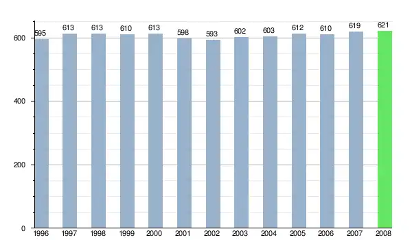 Według danych z dnia 31 grudnia 2012 roku, wieś zamieszkiwało 611 osób, w tym 312 kobiet i 299 mężczyzn[6].