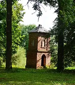 Na stromym brzegu Niewiaży rozciągał się park angielski o powierzchni 3 ha. Założono w nim cmentarz rodzinny. Na podjeździe do pałacu był gazon obsadzony ozdobnymi krzewami i kilkoma drzewami. Aleja lipowa prowadziła z podjazdu do biegnącego w pobliżu gościńca, łączącego Kiejdany z Poniewieżem.
