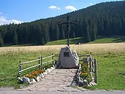 Podczas drugiej pielgrzymki Jana Pawła II do Polski 23 czerwca 1983 r. na Siwej Polanie lądował helikopter papieski. Na pamiątkę tego górale odnowili istniejący wmurowany w kamień krzyż żelazny z początków XIX wieku i zamieścili na nim tabliczkę upamiętniającą to wydarzenie. Znajduje się on środku polany, po lewej stronie drogi.