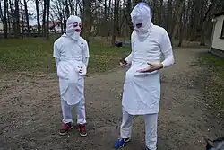 Współcześnie w korowodzie uczestniczą postacie ubrane w białe szaty i maski zakrywające twarz z wyjątkiem oczu i ust, z symbolicznym sztucznym koniem przywiązanym do pasa[5]. Prof. Andrzej Brencz odnajduje w nich nawiązanie do dawnych zachodniosłowiańskich obrzędów, związanych z kultem konia, mających na celu sprowadzenie urodzaju i zapewnienie dostatku[6].