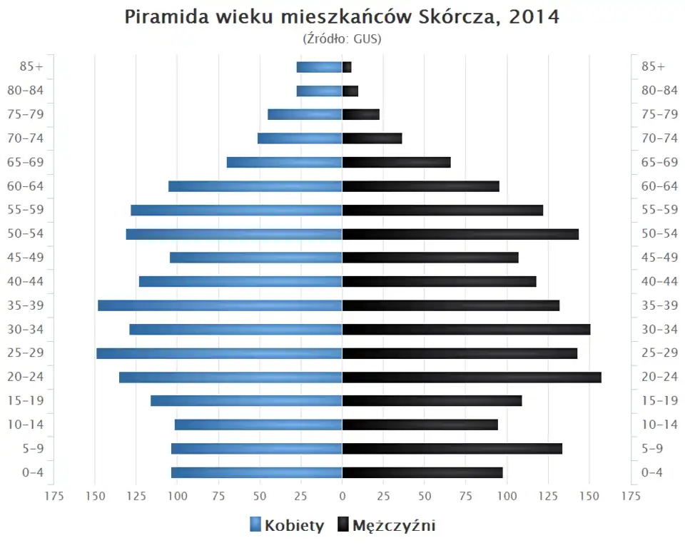 - Piramida wieku mieszkańców Skórcza w 2014 roku[3]: