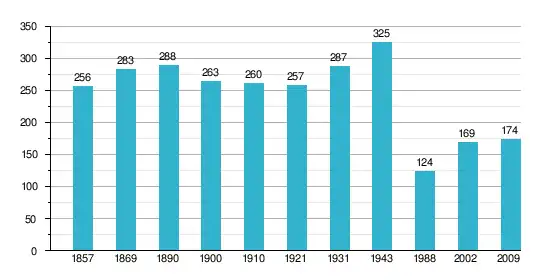 | Rok | 1900 | 1921 | 1931 | 2002 |