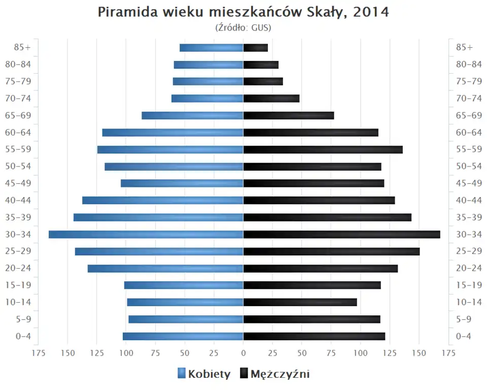 - Piramida wieku mieszkańców Skały w 2014 roku[4].