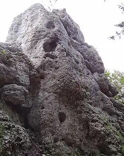 Przy tej samej linii wysokiego napięcia i po tej samej stronie, nieco dalej na północ znajduje się druga skała wspinaczkowa – Muminek, a około 50 m dalej na północ i nieco głębiej w lesie skała Alf[3].