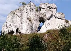 Przy drodze obok skał gmina Łazy przygotowała miejsce biwakowe z niewielkim parkingiem i zamontowała tablice informacyjne.