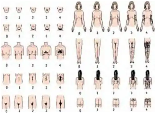 Oceniana jest intensywność owłosienia w dziewięciu androgenozależnych okolicach ciała (warga górna, broda, klatka piersiowa, ramię, górna część brzucha, podbrzusze, górna część pleców, dolna część pleców i udo)[3][6]. Owłosienie jest oceniane w skali od 1 do 4, gdzie 1 oznacza minimalną liczbę obecnych włosów ostatecznych, a 4 to odpowiednik owłosionego mężczyzny, natomiast w przypadku całkowitego braku włosów ostatecznych w badanym obszarze ciała punktów się nie przyznaje lub przyznaje się 0 punktów[3]. Włosy ostateczne od włosów typu vellus różnicuje się głównie na podstawie długości (powyżej 0,5 cm) i w mniejszym stopniu pigmentacji[3].