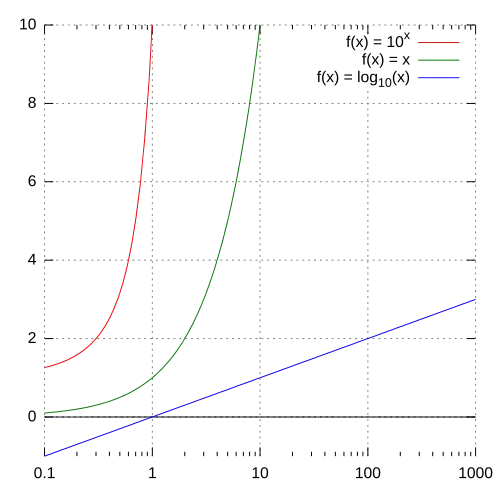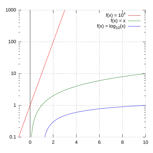 Na skali logarytmicznej wygodnie jest prezentować wzrost wykładniczy, dlatego często błędnie określa się go jako logarytmiczny. W tej skali wzrost logarytmiczny nie jest coraz szybszy, lecz coraz wolniejszy, jak widać na rysunkach obok.